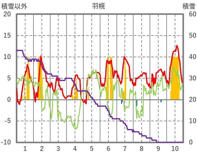 | 日 | 時 | 気温 | 降水 | 風向/風速 | 日照 | 積雪 | 降雪 |