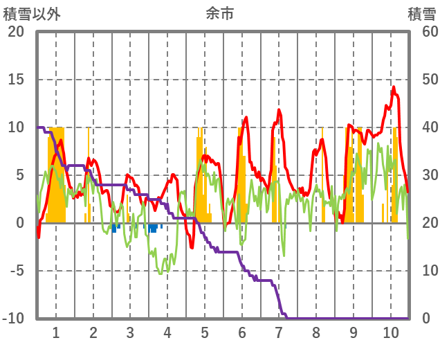 | 日 | 時 | 気温 | 降水 | 風向/風速 | 日照 | 積雪 | 降雪 |