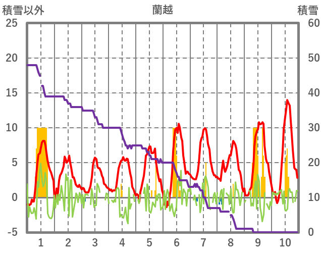 | 日 | 時 | 気温 | 降水 | 風向/風速 | 日照 | 積雪 | 降雪 |
