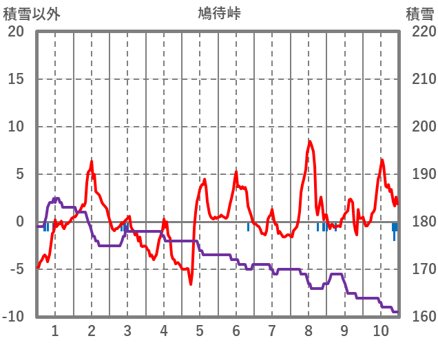 | 日 | 時 | 気温 | 降水 | 風向/風速 | 日照 | 積雪 | 降雪 |