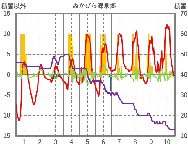 | 日 | 時 | 気温 | 降水 | 風向/風速 | 日照 | 積雪 | 降雪 |