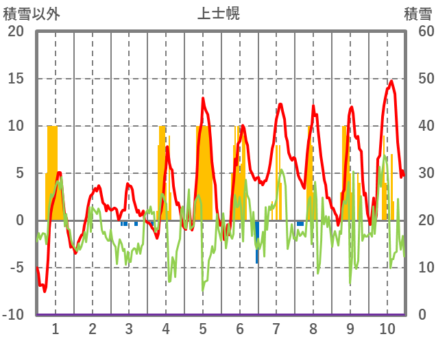| 日 | 時 | 気温 | 降水 | 風向/風速 | 日照 | 積雪 | 降雪 |