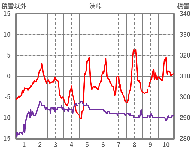 | 日 | 時 | 気温 | 降水 | 風向/風速 | 日照 | 積雪 | 降雪 |