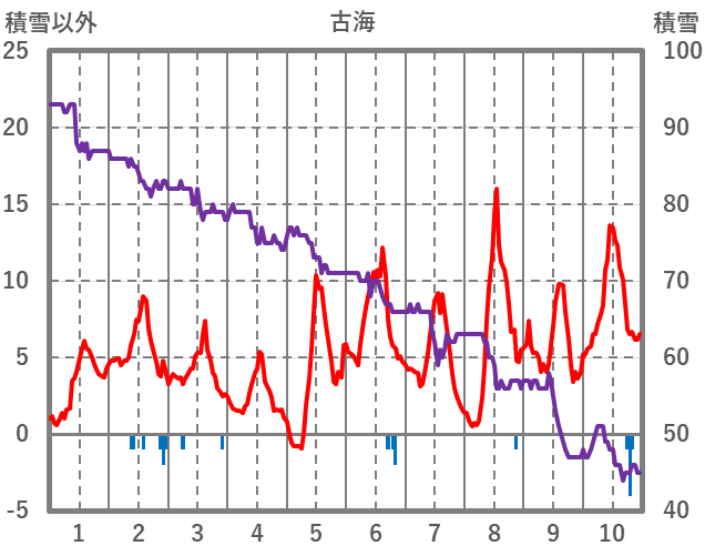 | 日 | 時 | 気温 | 降水 | 風向/風速 | 日照 | 積雪 | 降雪 |
