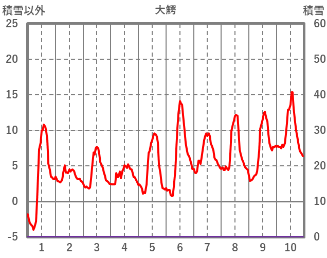 | 日 | 時 | 気温 | 降水 | 風向/風速 | 日照 | 積雪 | 降雪 |