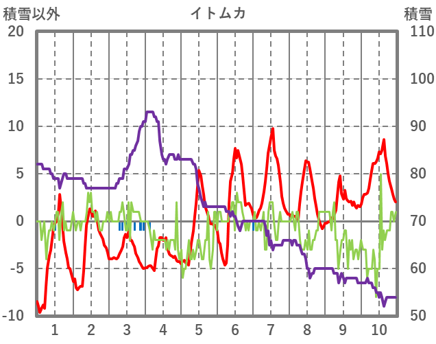 | 日 | 時 | 気温 | 降水 | 風向/風速 | 日照 | 積雪 | 降雪 |