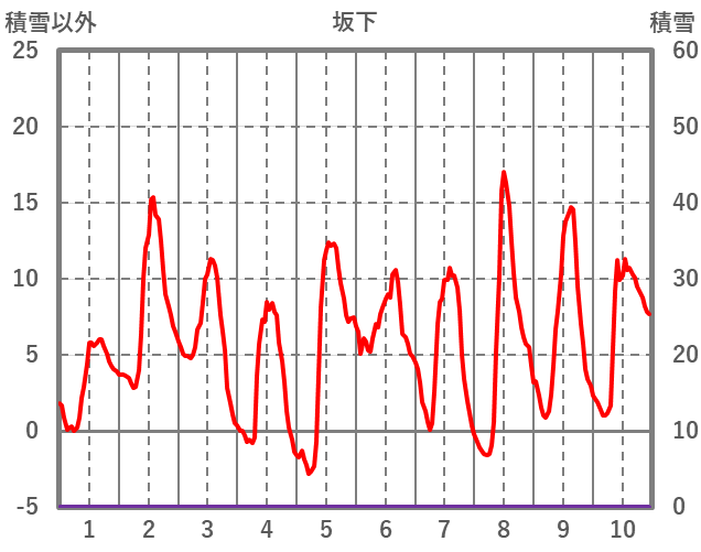 | 日 | 時 | 気温 | 降水 | 風向/風速 | 日照 | 積雪 | 降雪 |