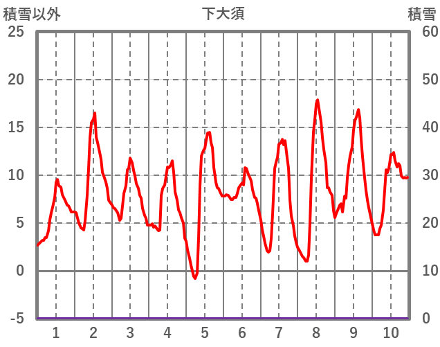 | 日 | 時 | 気温 | 降水 | 風向/風速 | 日照 | 積雪 | 降雪 |