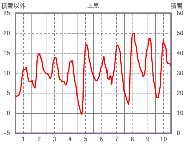 | 日 | 時 | 気温 | 降水 | 風向/風速 | 日照 | 積雪 | 降雪 |