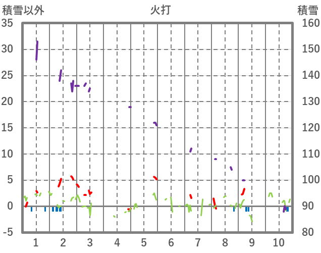 | 日 | 時 | 気温 | 降水 | 風向/風速 | 日照 | 積雪 | 降雪 |