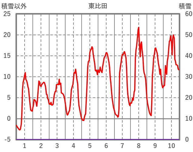 | 日 | 時 | 気温 | 降水 | 風向/風速 | 日照 | 積雪 | 降雪 |