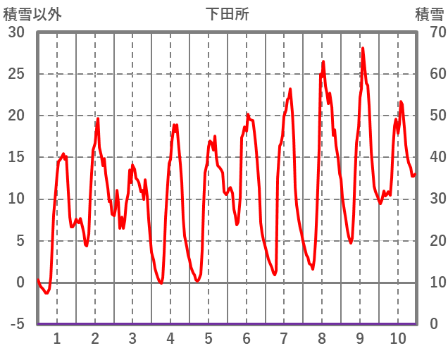 | 日 | 時 | 気温 | 降水 | 風向/風速 | 日照 | 積雪 | 降雪 |
