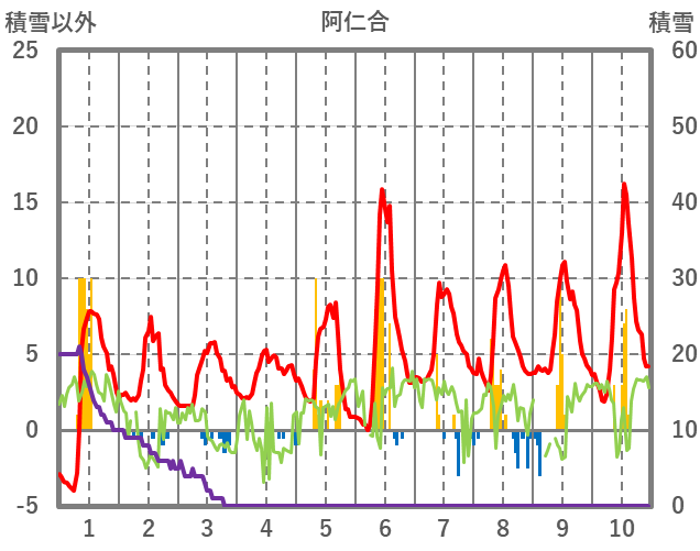 | 日 | 時 | 気温 | 降水 | 風向/風速 | 日照 | 積雪 | 降雪 |