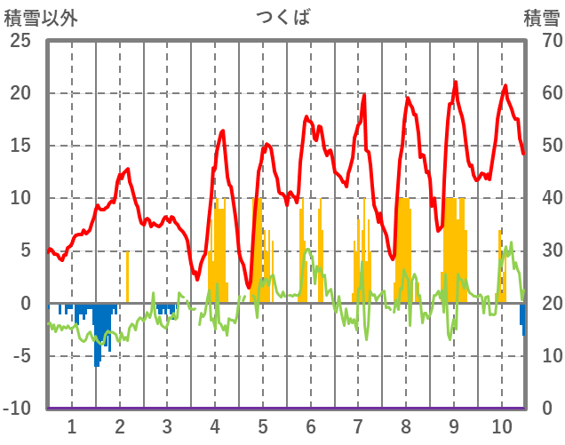 | 日 | 時 | 気温 | 降水 | 風向/風速 | 日照 | 積雪 | 降雪 |