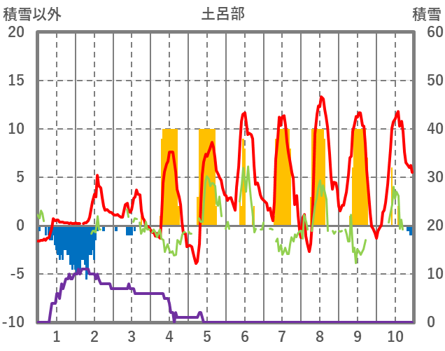 | 日 | 時 | 気温 | 降水 | 風向/風速 | 日照 | 積雪 | 降雪 |
