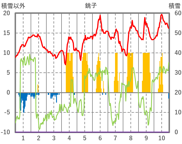 | 日 | 時 | 気温 | 降水 | 風向/風速 | 日照 | 積雪 | 降雪 |