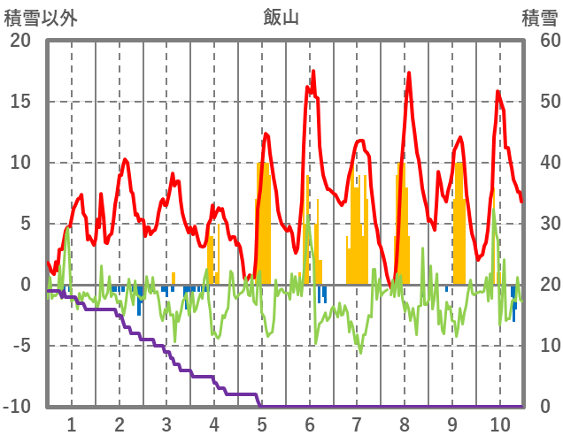 | 日 | 時 | 気温 | 降水 | 風向/風速 | 日照 | 積雪 | 降雪 |