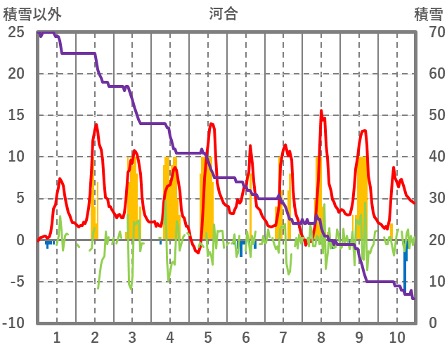 | 日 | 時 | 気温 | 降水 | 風向/風速 | 日照 | 積雪 | 降雪 |