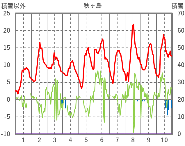 | 日 | 時 | 気温 | 降水 | 風向/風速 | 日照 | 積雪 | 降雪 |