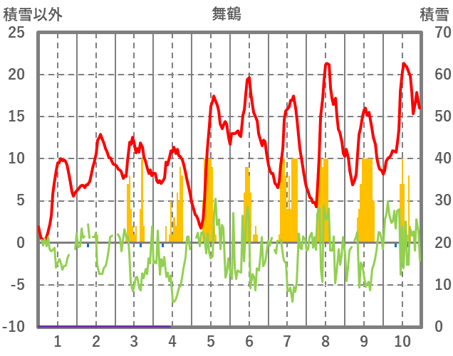 | 日 | 時 | 気温 | 降水 | 風向/風速 | 日照 | 積雪 | 降雪 |