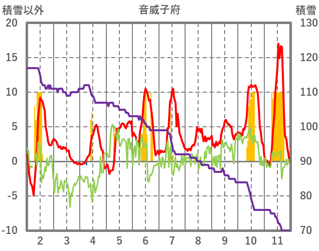 | 日 | 時 | 気温 | 降水 | 風向/風速 | 日照 | 積雪 | 降雪 |