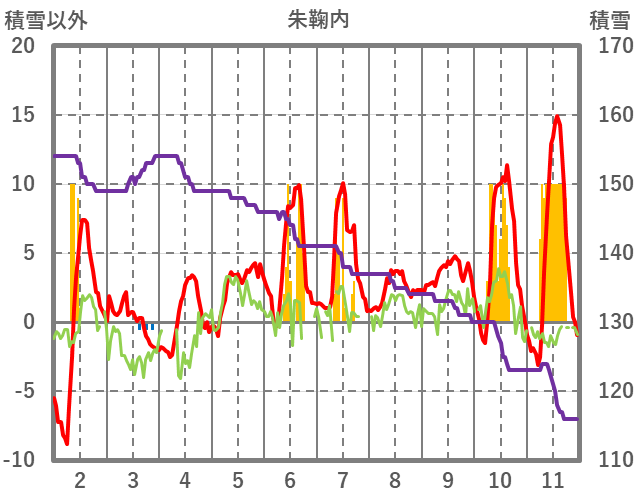 | 日 | 時 | 気温 | 降水 | 風向/風速 | 日照 | 積雪 | 降雪 |