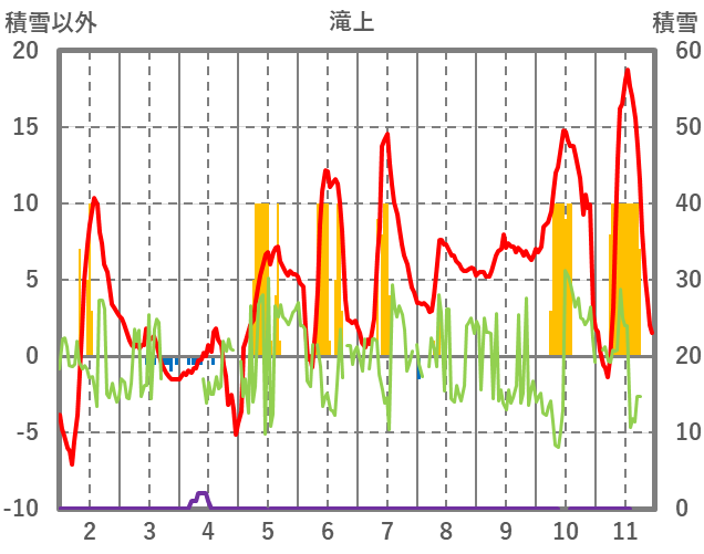 | 日 | 時 | 気温 | 降水 | 風向/風速 | 日照 | 積雪 | 降雪 |