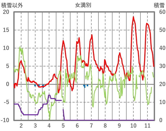 | 日 | 時 | 気温 | 降水 | 風向/風速 | 日照 | 積雪 | 降雪 |