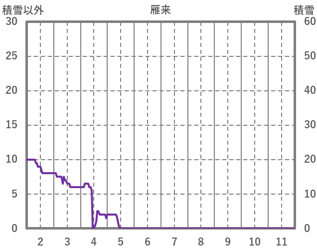 | 日 | 時 | 気温 | 降水 | 風向/風速 | 日照 | 積雪 | 降雪 |