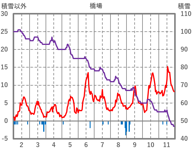 | 日 | 時 | 気温 | 降水 | 風向/風速 | 日照 | 積雪 | 降雪 |