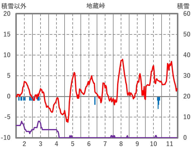 | 日 | 時 | 気温 | 降水 | 風向/風速 | 日照 | 積雪 | 降雪 |
