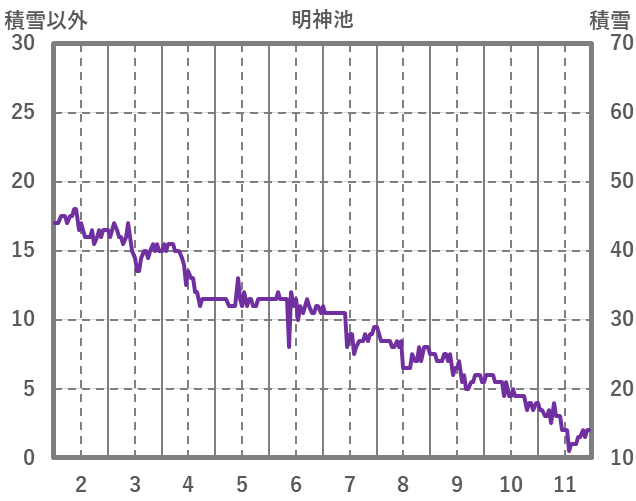 | 日 | 時 | 気温 | 降水 | 風向/風速 | 日照 | 積雪 | 降雪 |