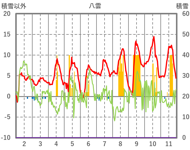 | 日 | 時 | 気温 | 降水 | 風向/風速 | 日照 | 積雪 | 降雪 |