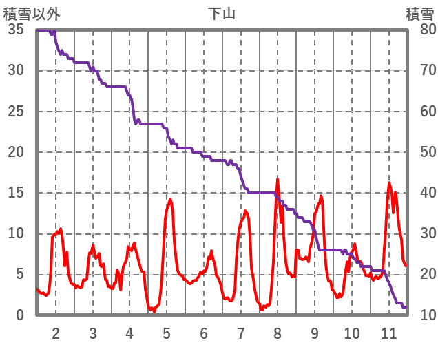 | 日 | 時 | 気温 | 降水 | 風向/風速 | 日照 | 積雪 | 降雪 |