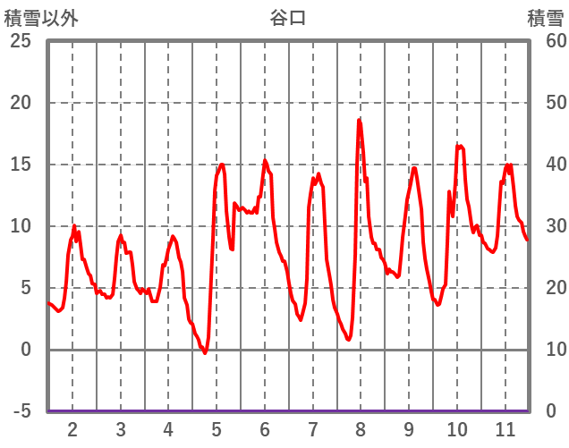 | 日 | 時 | 気温 | 降水 | 風向/風速 | 日照 | 積雪 | 降雪 |