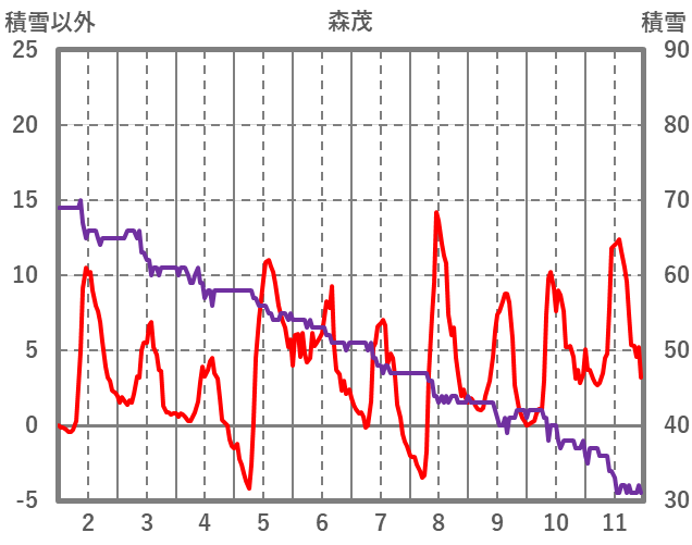 | 日 | 時 | 気温 | 降水 | 風向/風速 | 日照 | 積雪 | 降雪 |
