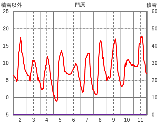 | 日 | 時 | 気温 | 降水 | 風向/風速 | 日照 | 積雪 | 降雪 |