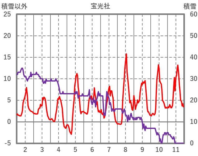 | 日 | 時 | 気温 | 降水 | 風向/風速 | 日照 | 積雪 | 降雪 |
