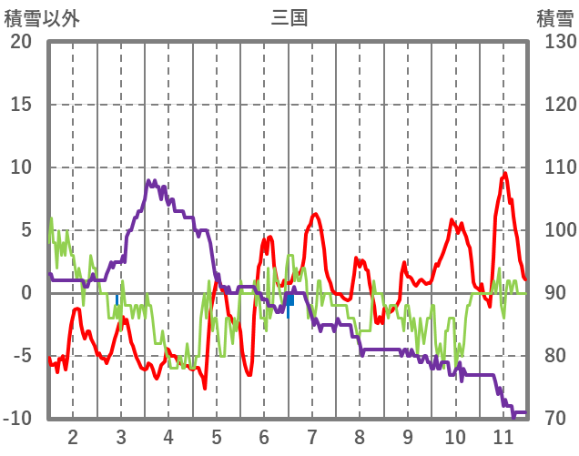 | 日 | 時 | 気温 | 降水 | 風向/風速 | 日照 | 積雪 | 降雪 |