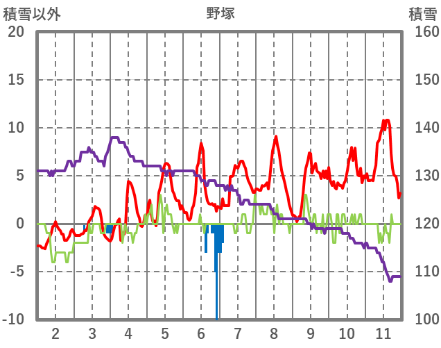 | 日 | 時 | 気温 | 降水 | 風向/風速 | 日照 | 積雪 | 降雪 |
