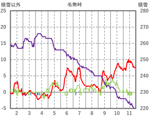 | 日 | 時 | 気温 | 降水 | 風向/風速 | 日照 | 積雪 | 降雪 |