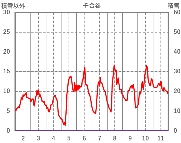 | 日 | 時 | 気温 | 降水 | 風向/風速 | 日照 | 積雪 | 降雪 |