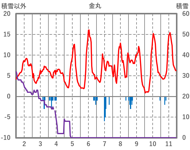| 日 | 時 | 気温 | 降水 | 風向/風速 | 日照 | 積雪 | 降雪 |