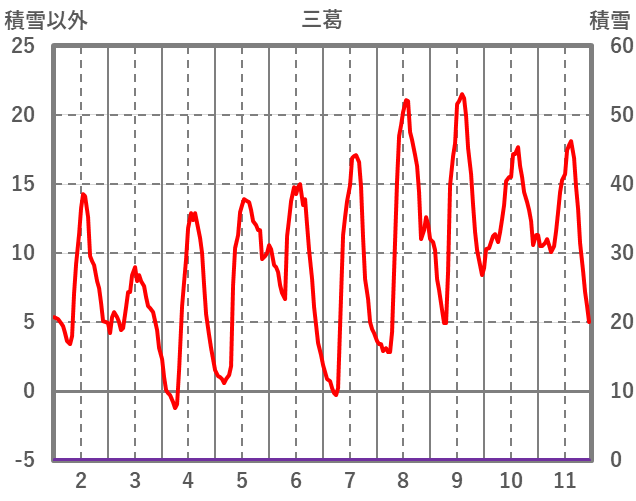 | 日 | 時 | 気温 | 降水 | 風向/風速 | 日照 | 積雪 | 降雪 |