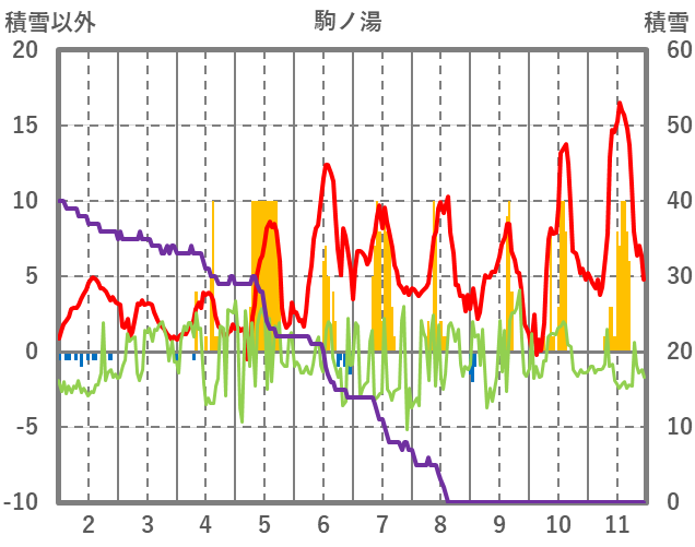 | 日 | 時 | 気温 | 降水 | 風向/風速 | 日照 | 積雪 | 降雪 |