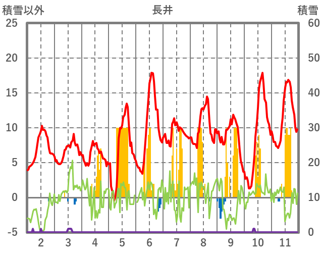 | 日 | 時 | 気温 | 降水 | 風向/風速 | 日照 | 積雪 | 降雪 |