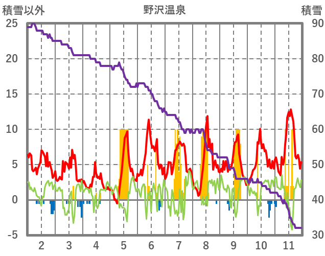 | 日 | 時 | 気温 | 降水 | 風向/風速 | 日照 | 積雪 | 降雪 |