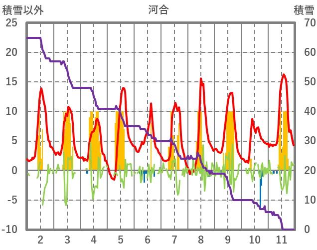 | 日 | 時 | 気温 | 降水 | 風向/風速 | 日照 | 積雪 | 降雪 |