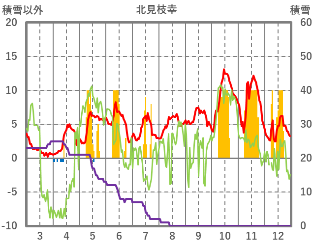 | 日 | 時 | 気温 | 降水 | 風向/風速 | 日照 | 積雪 | 降雪 |