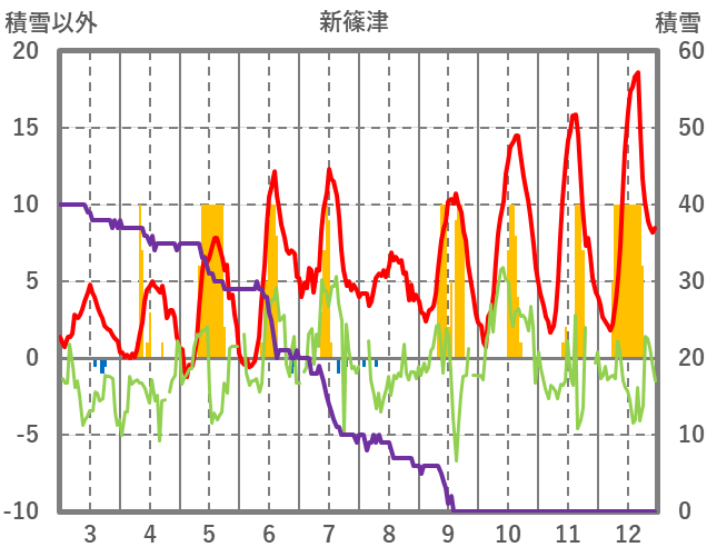 | 日 | 時 | 気温 | 降水 | 風向/風速 | 日照 | 積雪 | 降雪 |